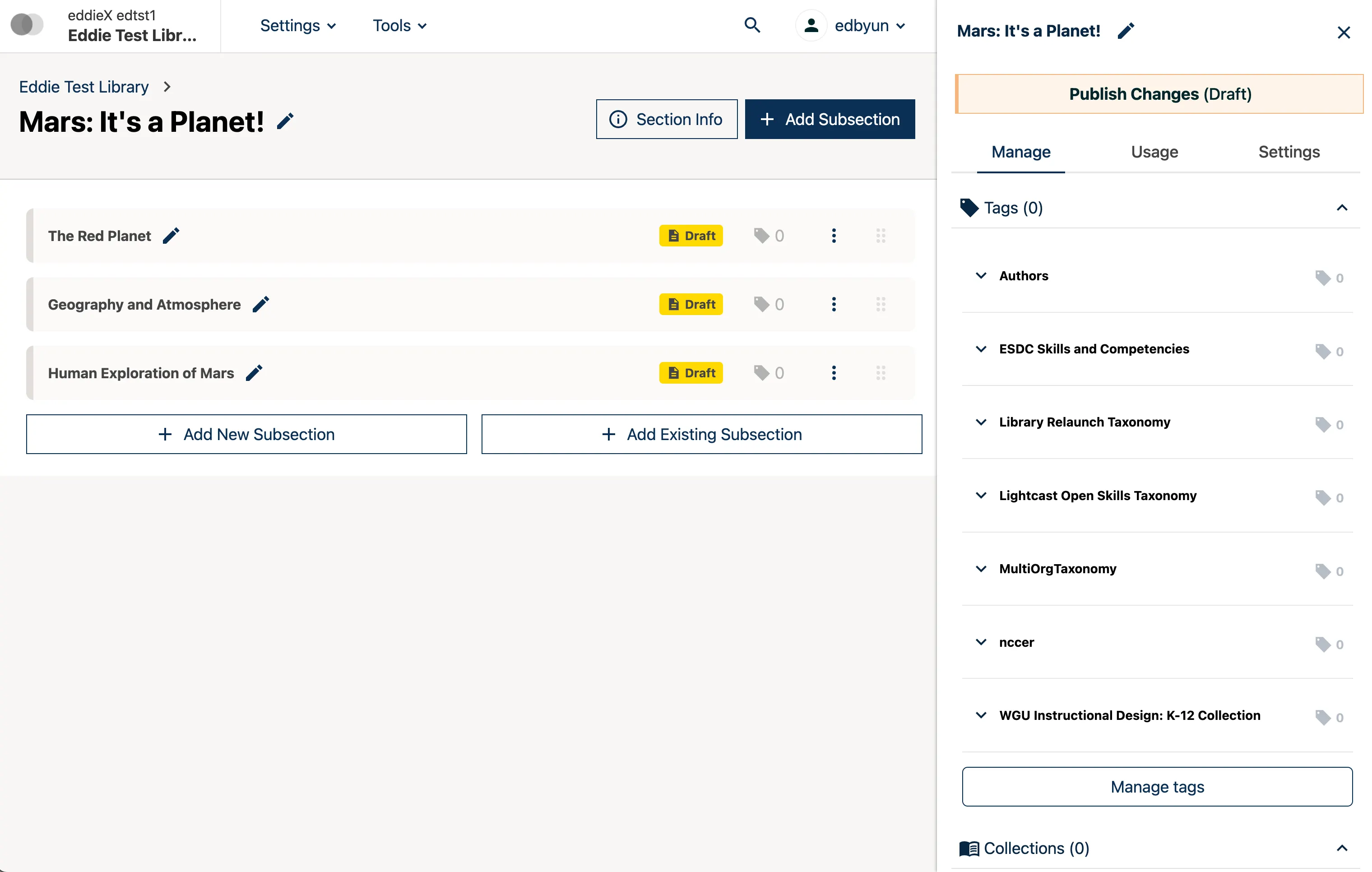 Create and Edit New Subsections and Sections
