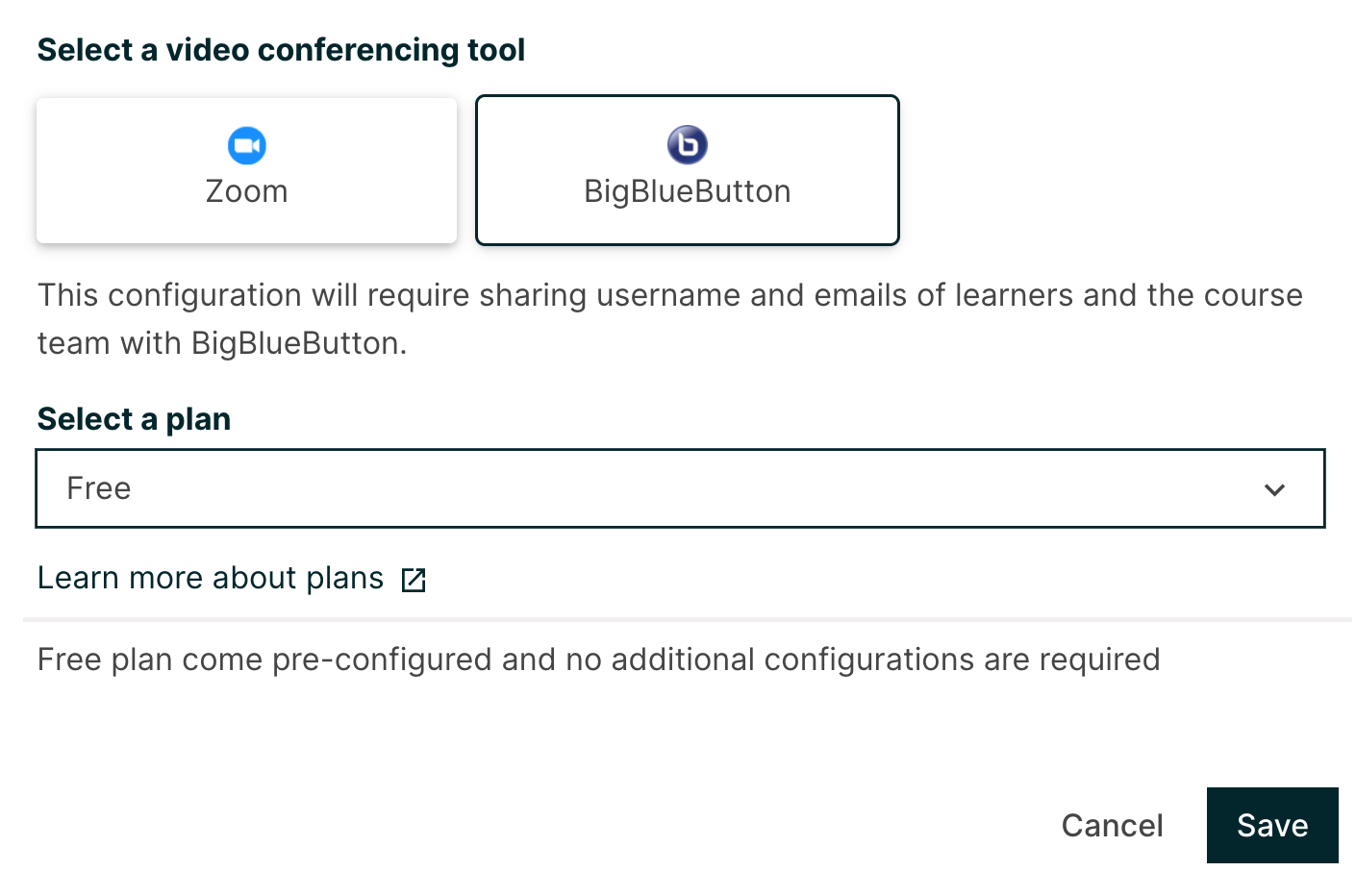 Live app can be used to configure video conferencing LTI tools like Zoom and BigBlueButton. These tools will help connect educators and learners within the platform.