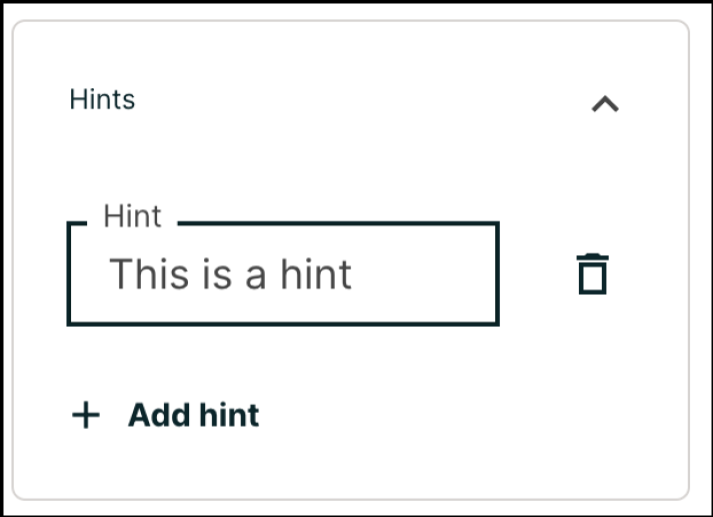 You can add one or more hints that are displayed to learners. When you add hints, the Hint button is automatically displayed to learners. Learners can access the hints by selecting Hint beneath the problem. A learner can view multiple hints by selecting Hint multiple times.