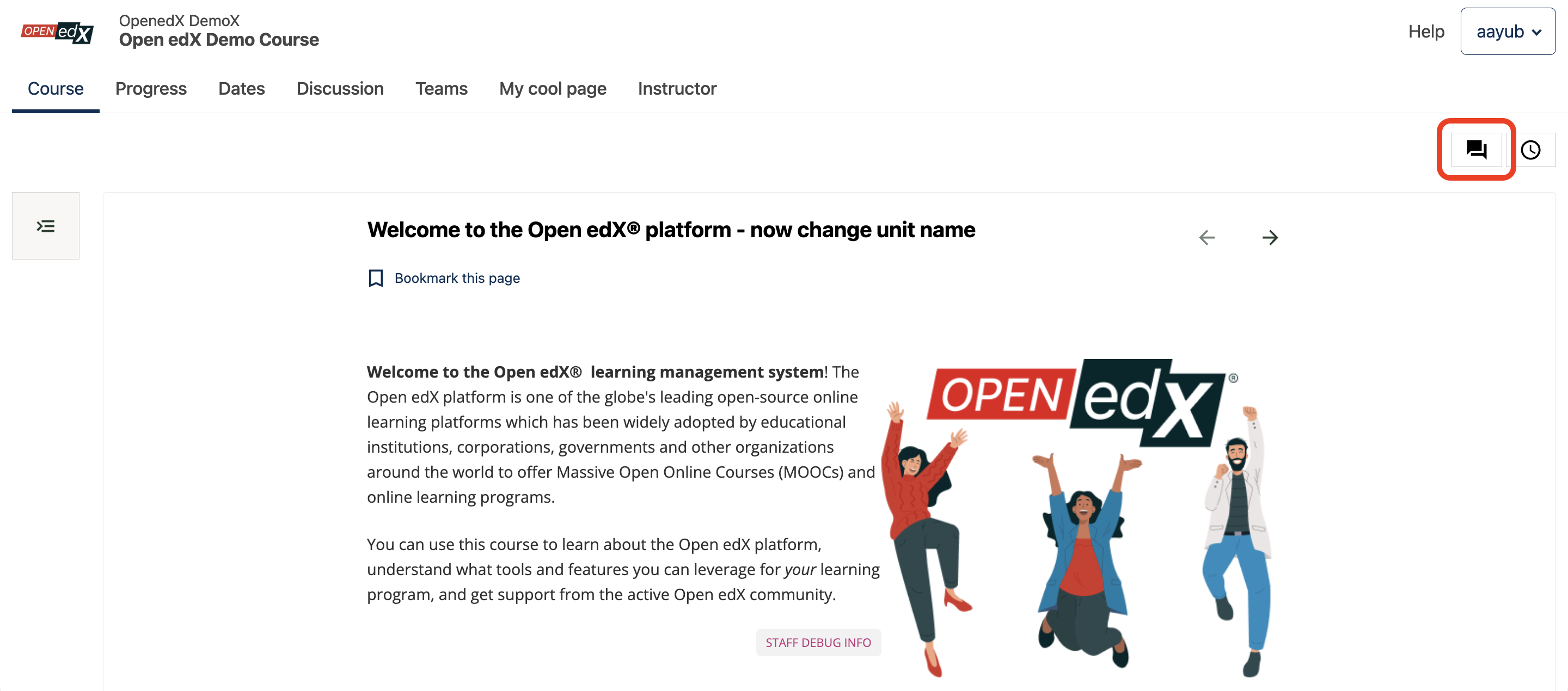 Some course units include a discussion panel on the right side of the page. You can use this panel to read or take part in discussions related specifically to that unit.